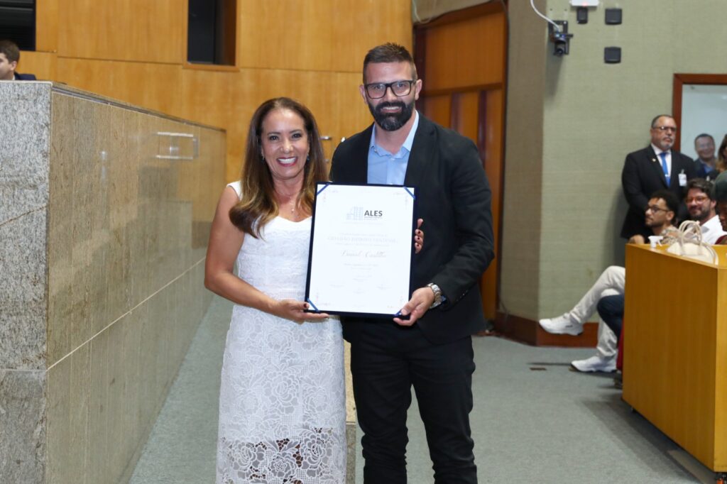 Postagem: Por Equipe de Comunicação da Deputada Janete de Sá | 15/12/2025 A Assembleia Legislativa do Espírito Santo (Ales) realizou nesta terça-feira (2), uma Sessão Solene que marcou a entrega da mais alta honraria da Casa, a Ordem do Mérito “Domingos Martins”, e dos Títulos de Cidadania Espírito-Santense. Whatsapp Instagram Facebook Youtube X-twitter Os lauréis […]
